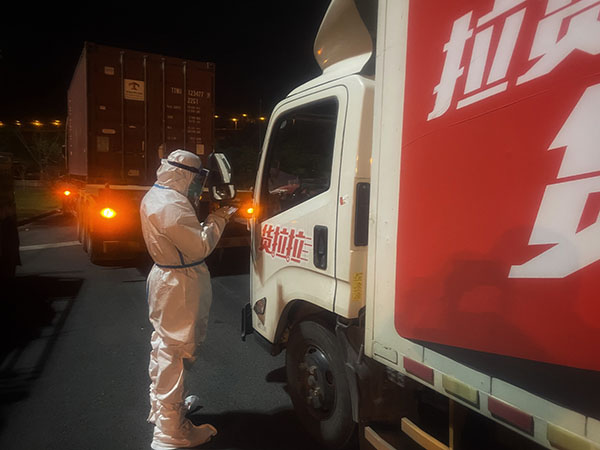 “您好,請您和隨行人員出示一下健康碼、行程碼和核酸檢測報告……”葉玉龍對一名貨車司機說。身為黨員的葉玉龍曾多次參與社區(qū)聯(lián)防聯(lián)控工作,在接到志愿服務號召后,他毅然出列,協(xié)助工作人員對往來車輛進行雙碼雙查、防疫信息登記工作。
