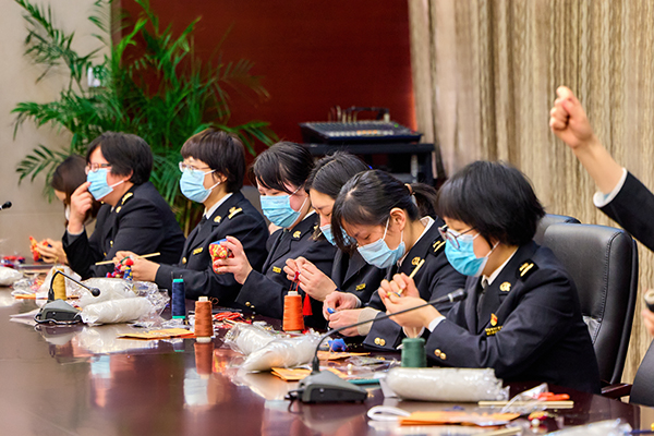 大家決定把制作好的部分成品贈送給防疫一線關(guān)員家屬,在慶祝節(jié)日的同時也以自己的巧手慧心向堅守口岸“疫”線的海關(guān)勇士們致敬。