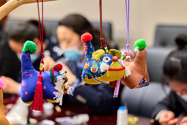 大家落座后,在布藝老師的指導下,開始制作小老虎掛件、胸針、擺件等布藝品。先把布藝品翻面,然后填充棉花、香料等,接下來就是收口,縫針。有基礎(chǔ)的女關(guān)員選擇制作老虎擺件,看她們仔細認真地縫制每一個部位,手指翻轉(zhuǎn)間,針線穿梭,一個個憨態(tài)可掬的小老虎就成型了。其他女關(guān)員手里一個個精美的掛件、胸針也陸續(xù)制作完成,看著親手制作的布藝品,臉上都洋溢著笑容。