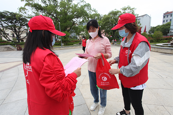 活動現場,工作人員和志愿者們通過發(fā)放婚育新風倡議書向過往居民群眾積極宣傳適齡婚育、優(yōu)生優(yōu)育、健康生活等方面的相關知識,大力倡導男女平等、尊重生育、和諧家風等健康婚育觀念,對大家較為關心的“三孩生育”政策問題給予耐心解答。志愿者們還沿途撿拾地上丟棄的煙蒂、垃圾,號召居民群眾不要在公共場所吸煙、不亂扔煙頭垃圾,爭做文明生活踐行者,為創(chuàng)建全國縣級文明城市貢獻自己的一份力量。