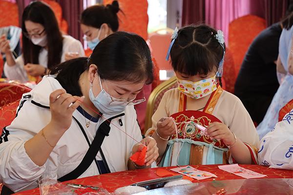 舞臺(tái)邊,包粽子、彈古箏、涂雄黃等各式攤位應(yīng)接不暇,家長(zhǎng)孩子們積極參與各式端午傳統(tǒng)習(xí)俗活動(dòng),切身體驗(yàn)幸福、安康的端午節(jié)日氛圍?!敖裉靵?lái)帶孩子感受端午氛圍,讓他了解一下端午節(jié)有哪些習(xí)俗,不要忘記。”家長(zhǎng)費(fèi)女士說(shuō)道。
