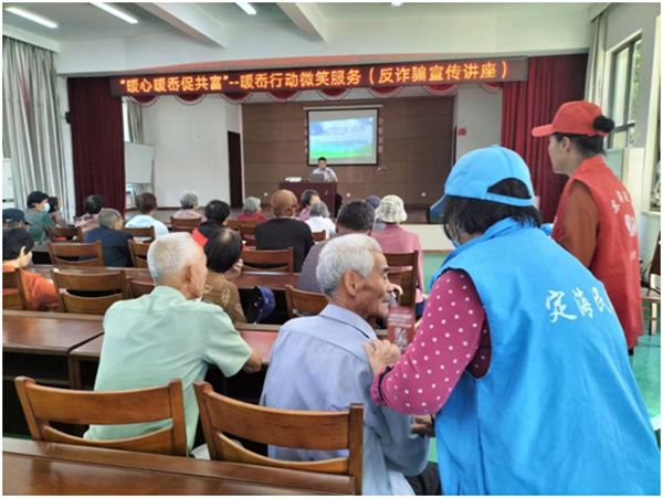 加強(qiáng)志愿服務(wù)。積極圍繞黨政關(guān)心、社會關(guān)切和群眾關(guān)心的民生問題,常態(tài)化開展文明勸導(dǎo)、文明宣傳、疫情防控、抗臺搶險救災(zāi)等服務(wù)活動。加強(qiáng)反詐宣傳營造全面反詐氛圍,與定海區(qū)公安局、人民銀行定海支行成立“紅舟護(hù)航”反詐聯(lián)盟,充分發(fā)揮“紅舟護(hù)航”反詐聯(lián)盟綜合優(yōu)勢,進(jìn)社區(qū)、進(jìn)校園、進(jìn)企業(yè)開展形式多樣的反詐宣講,累計(jì)開展反詐宣傳進(jìn)駐420余場次,