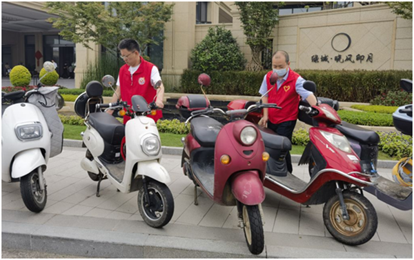 活動(dòng)現(xiàn)場(chǎng),中心志愿者將道路兩旁亂停亂放和未停放在在指定區(qū)域的自行車、電瓶車推到指定停放點(diǎn)擺放整齊,確保周邊車輛和群眾正常通行。經(jīng)過(guò)大家努力,道路旁的自行車、電動(dòng)車全部擺放整齊有序,有效治理非機(jī)動(dòng)車亂停放行為,努力為群眾營(yíng)造“安全、暢通、有序”的道路環(huán)境。